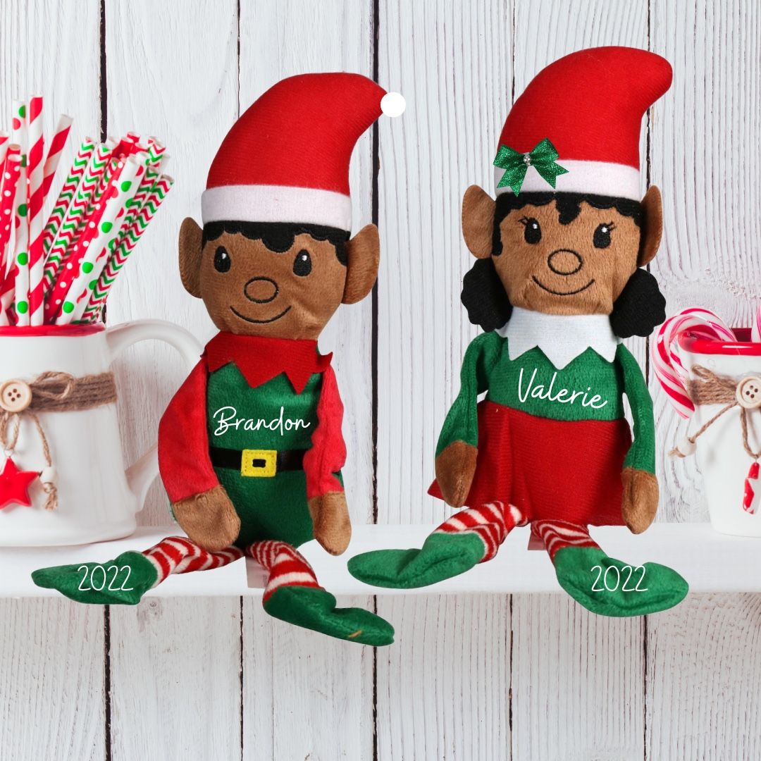 Boy and girl elfs available Personalized elf for Christmas Name with year or birth year. Boys have added pompom on hat Girls have added bow red or green Perfect for elf on the shelf Pick up only Lighter skin elfs also available Only $7 each