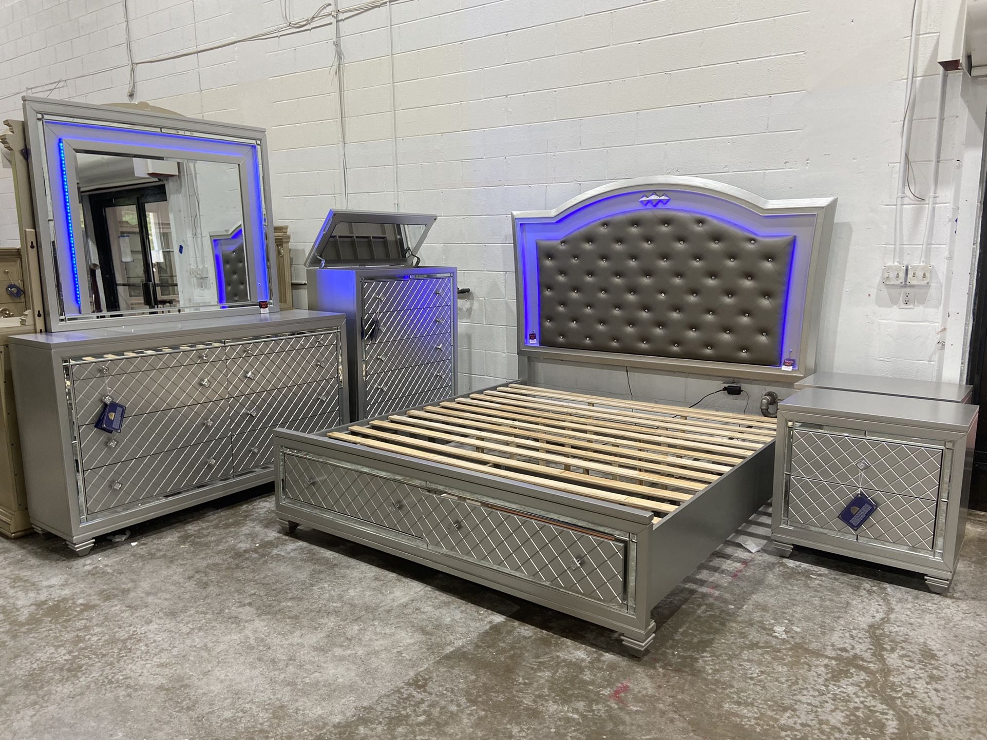 Include king bed Chest Dresser with mirror 2 nightstand New Queen set available Price set $3489 Delivery and setup available Financing available ($39 down payment)