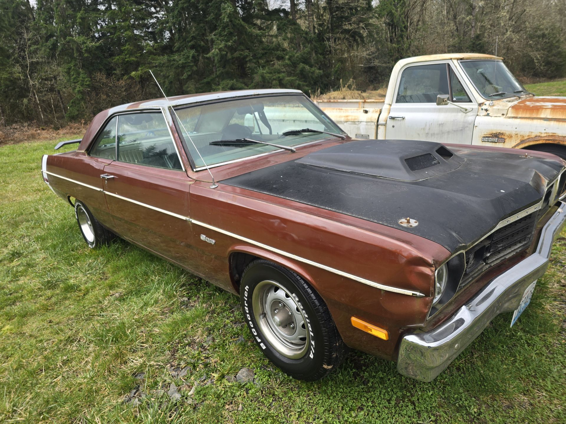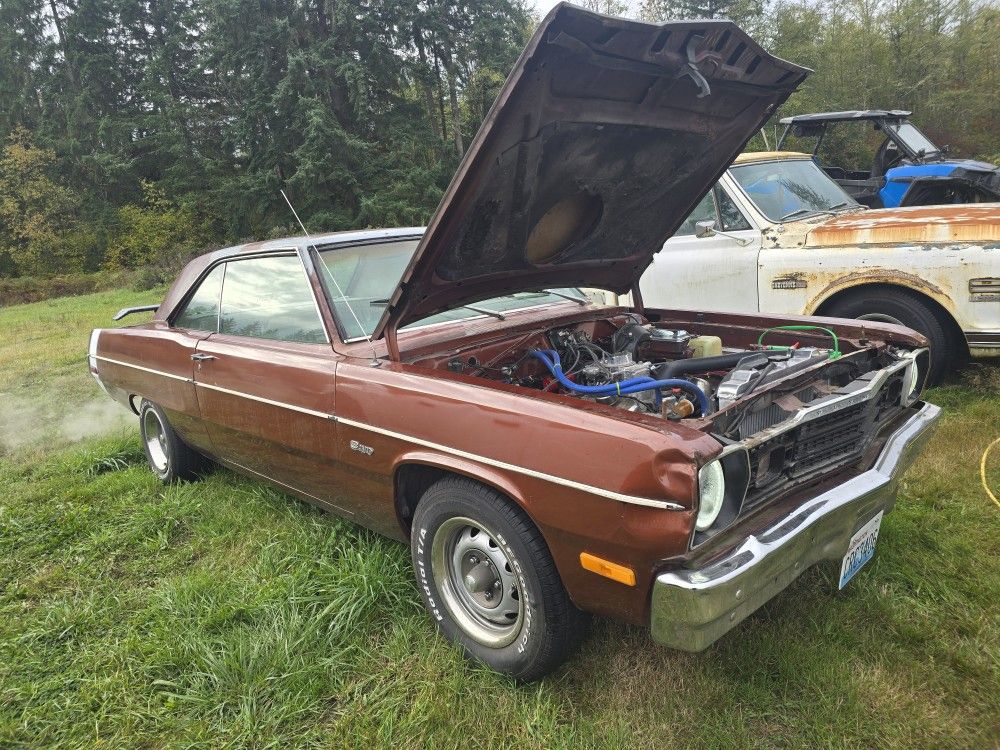 $8500 trade value or cash on your end im not looking to add any cash sorry 1973 Plymouth Scamp 318 v8 Auto Lots new parts Needs little work to be a daily So bring a trailer Needs timing carburetor adjusted and alignment.Because everything is new or some things have been replaced Trade No square body's unless they're Lowered or lifted already Silverado Toyota tacoma Colorado Crew cab 4x4 Chevy Duramax Cummins Powerstroke