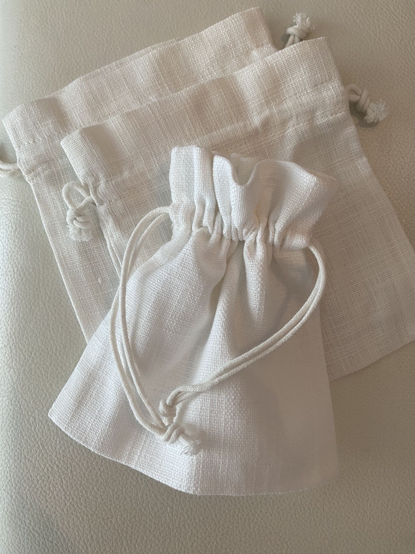 Set of 1000 Size : 13x15cm Materiel : natural linen Pouch weight : 180g Closing cordon : natural cotton