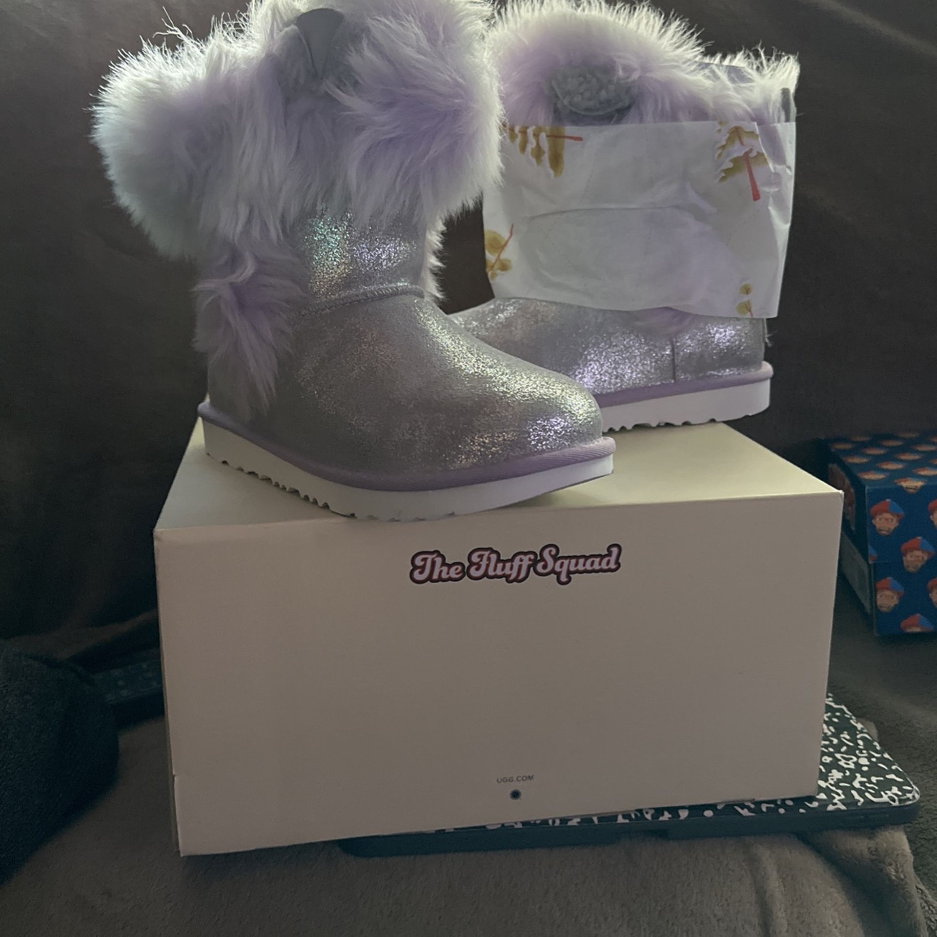 Brand new Ugg boots very cute. Silver and purple. $60