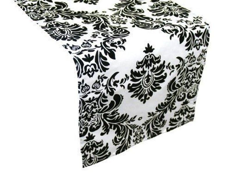Damask Table Runner 12" x 108" 3D Black White Flocking Flocked Velvet - USA Made