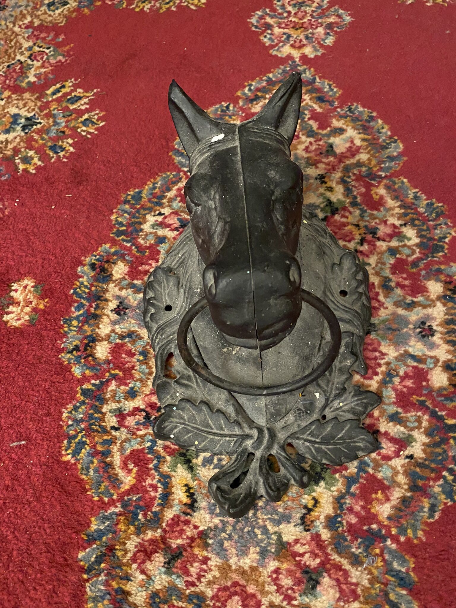 Vintage Black Cast Iron Horse Head Wall Mount Hitching Post Barn Decor Thorobred
