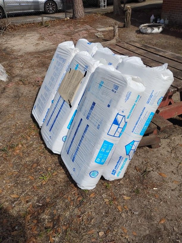 New unopened bags of Johns Manville Attic Protector blow-in fiberglass insulation. Has R-values like R-19, R-30, R-38, R-49. Formaldehyde free. Got a few bags available.