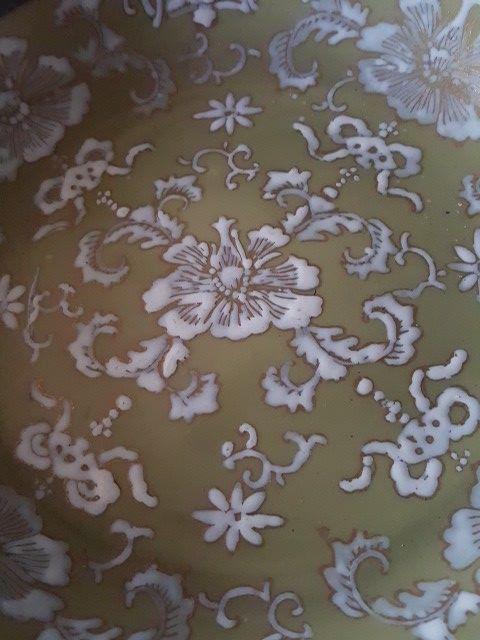 Antique Japanese porcelain pewter lining Bowl made in Hong Kong with gold trim hand-painted excellent condition