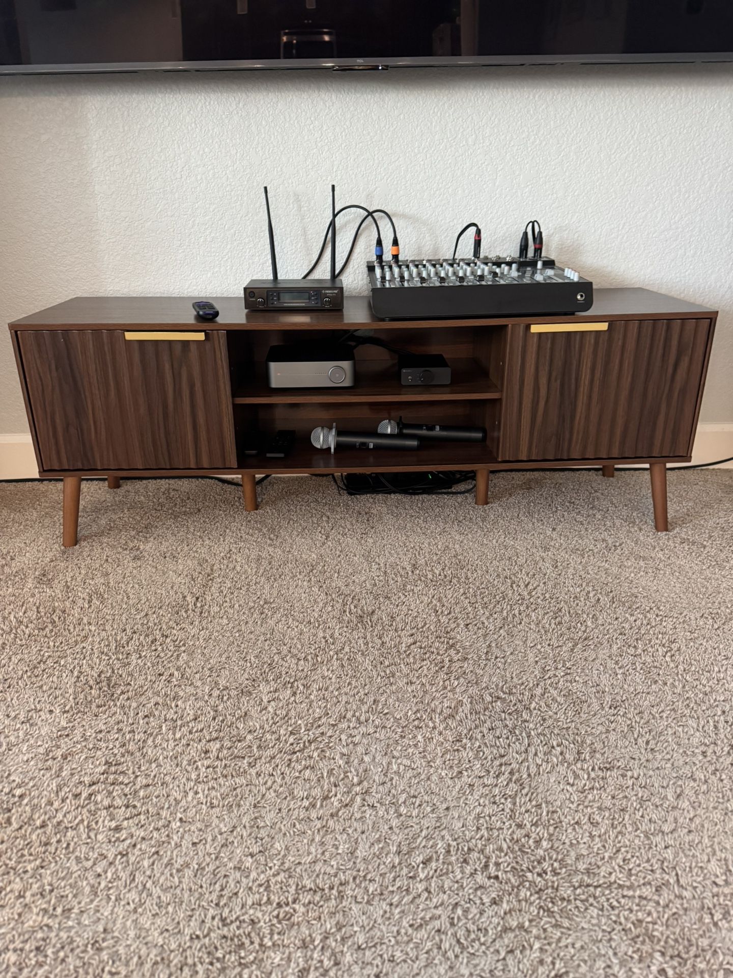 New, bought and it didn’t match with my design, selling less than I paid. Boho style TV stand