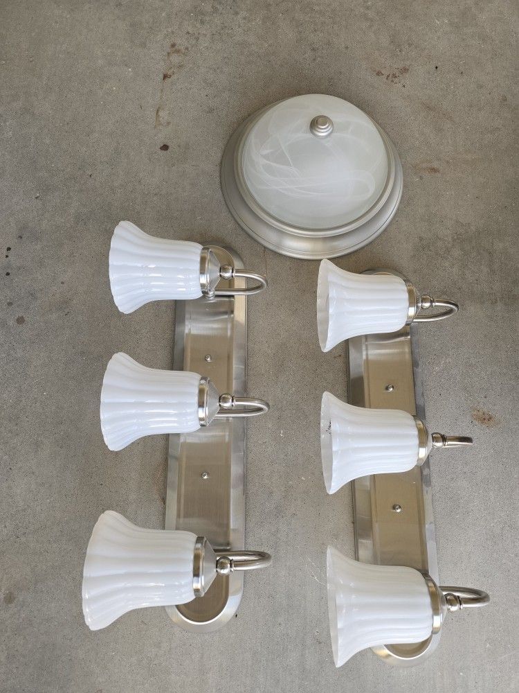Son dos juegos de luces de tres y dos luces redondas las redondas son de 12 puladas