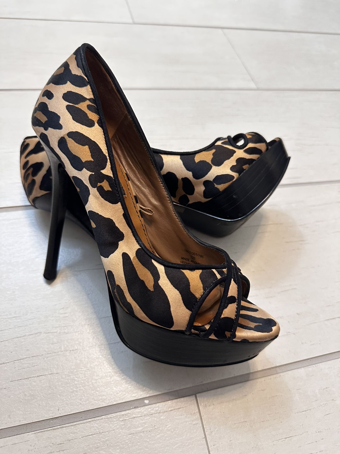 Chic Zara heels with bold animal print. Peep toe design. Perfect for a stylish statement. Size 37