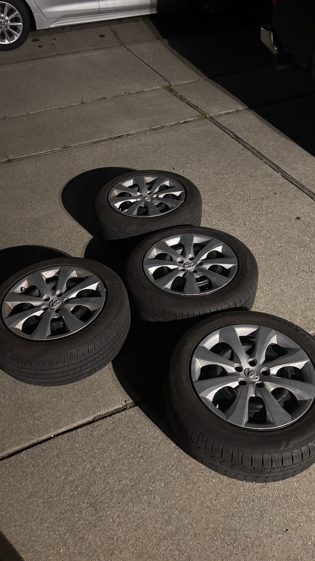 Used like new four toyota corolla wheels with lug nuts. All four treads are 90% perfect. Located Fairfield Ca.
