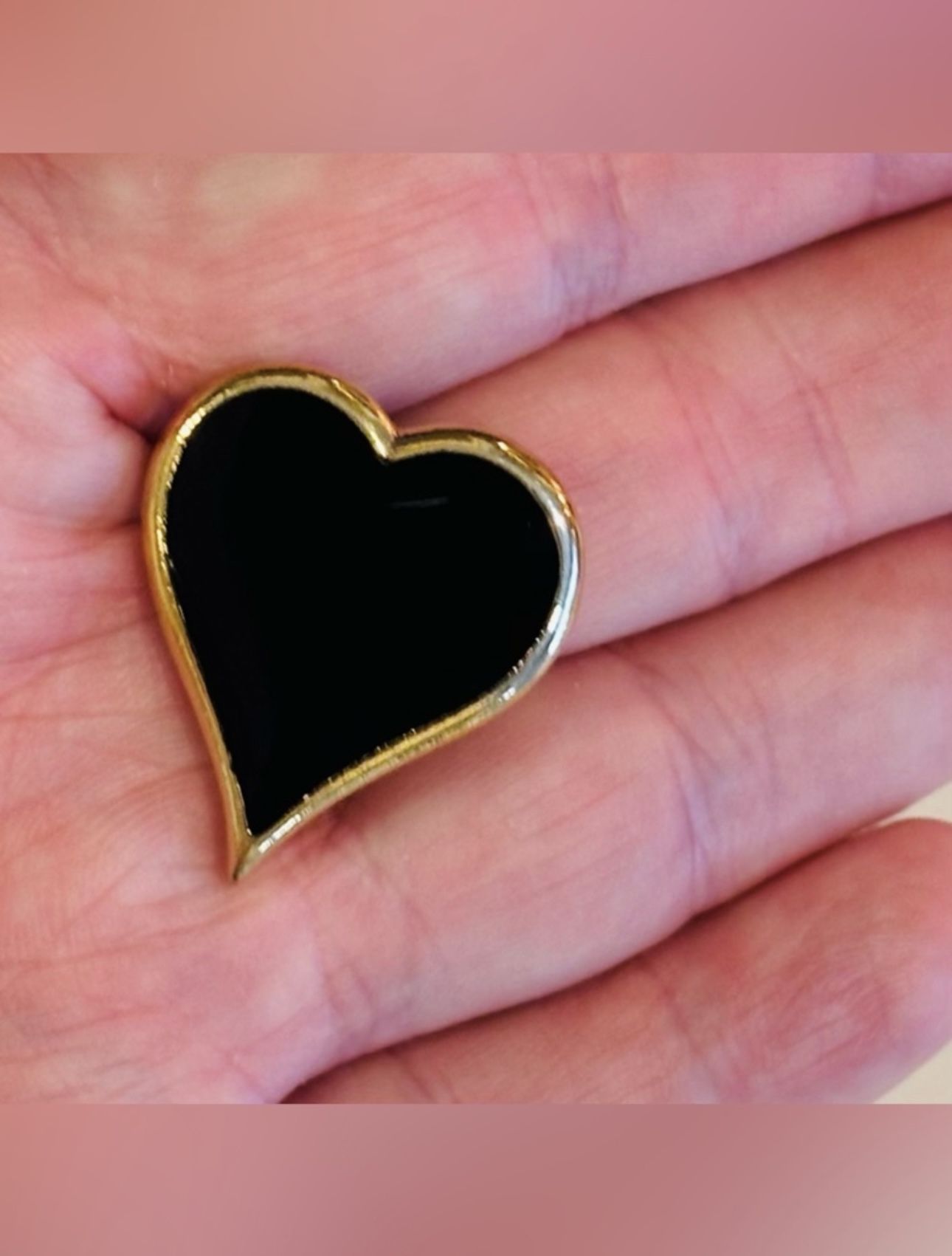 Brooch Lapel Pin FUN Solid Metal Black Heart Enamel Gold Fine Art SARAH COVENTRY Name Brand Unisex Men Women Collectible Int: Runway Fashion Designer