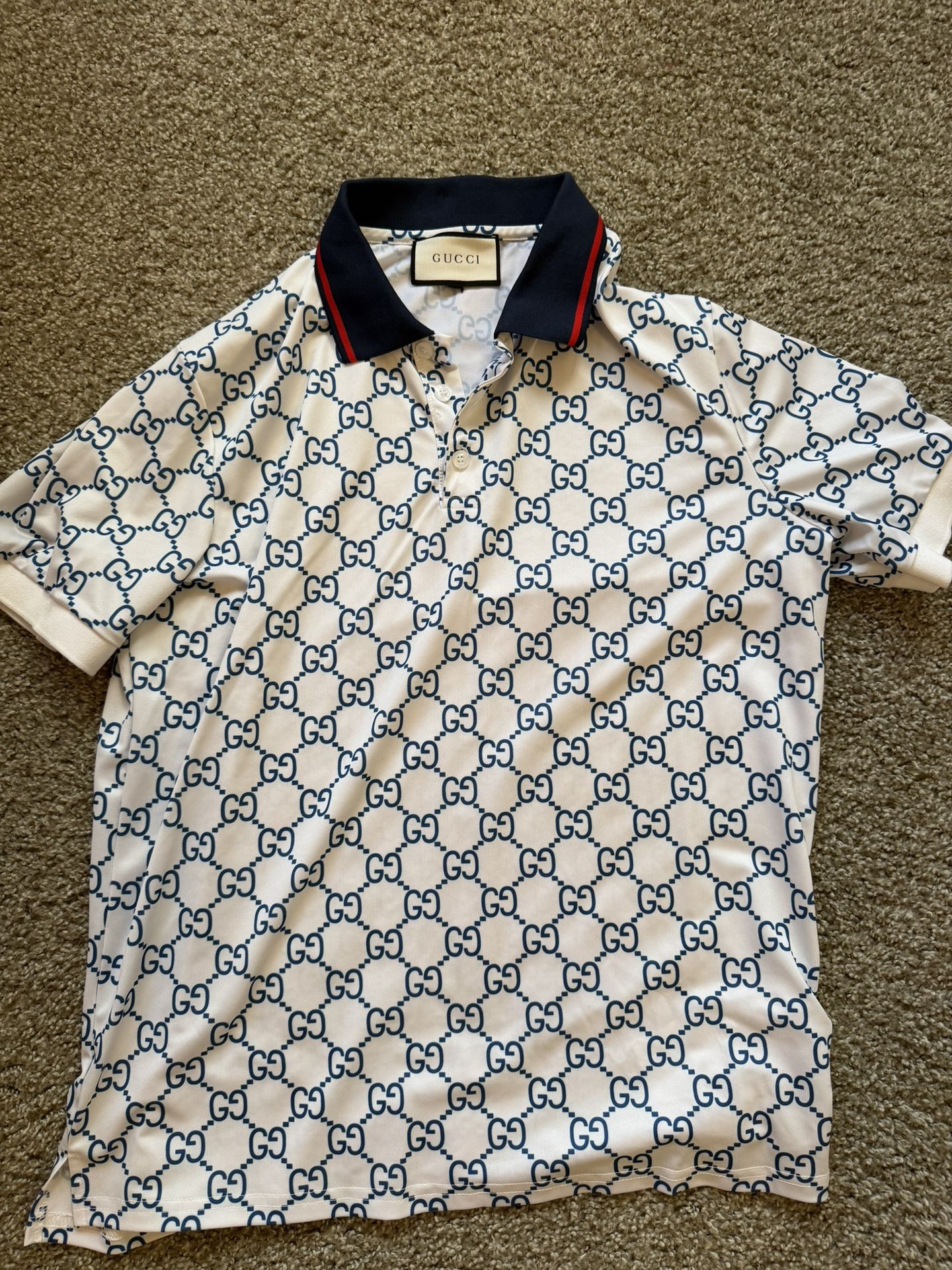 Original Men’s White Gucci with Navy and Red Collar and Blue Double G logo size Large (slim fit also fits M or Medium). Great condition, $350 cash, no trades 100% Authentic