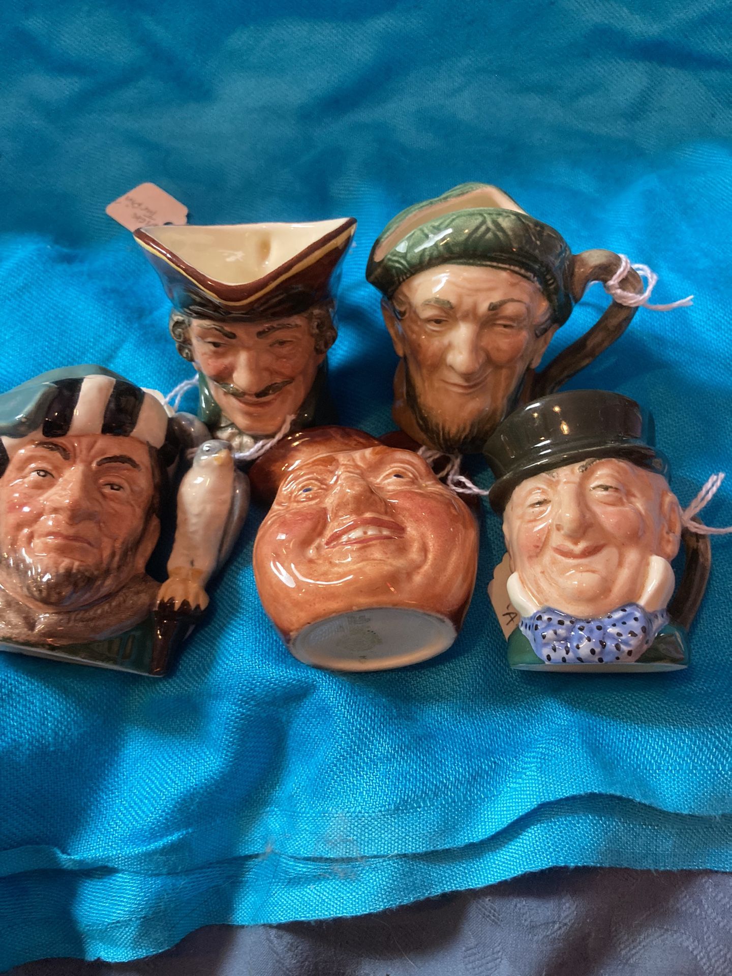 Hand painted Royal Doulton porcelain Toby Mugs 2.5”-3” All in excellent preowned condition Mr. Mawcaber John Barleycorn Auld Mac Dick Turpin The Falconer