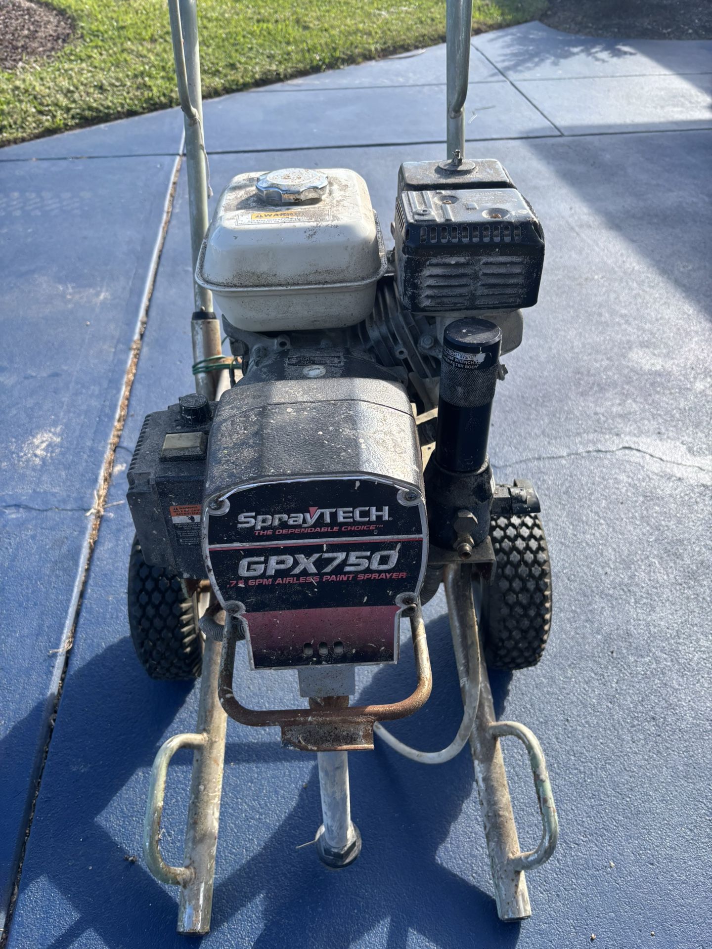 Commercial gas powered paint sprayer spray tech GPX 750 starts right up great machine for business.