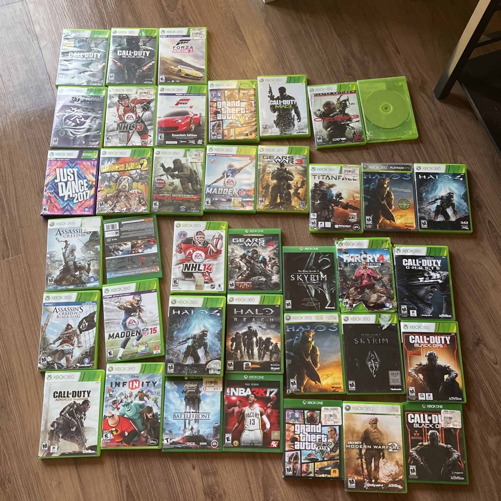 All games are in good working condition and some are still sealed in packaging, Xbox 1 is in great working condition along with 2 white controllers.