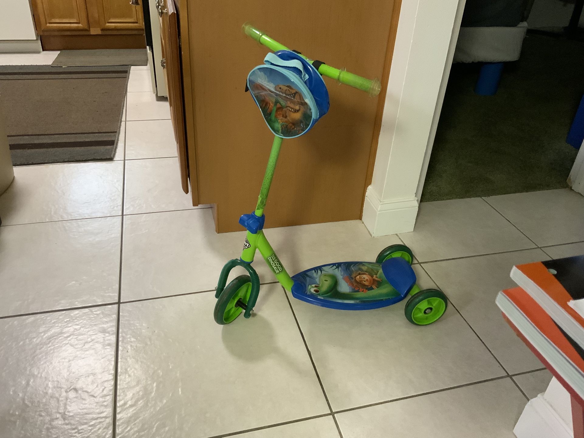 Green and blue scooter in good condition For age 3+, up to 60 pounds weight.