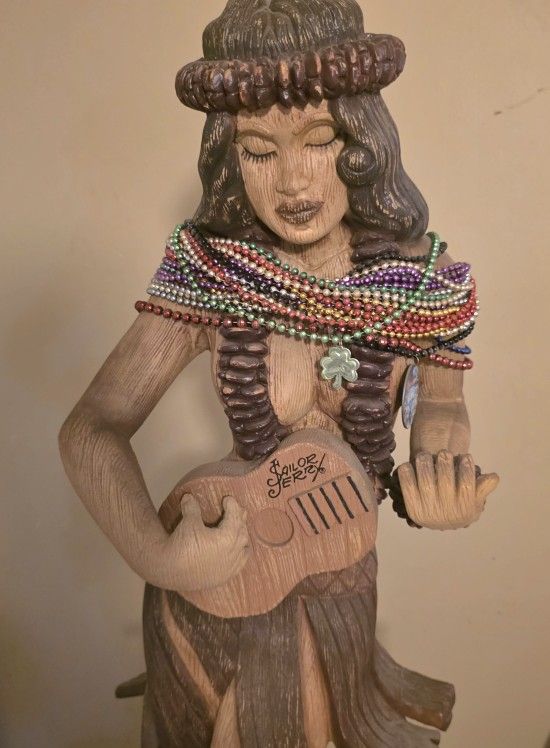 This is a rare original store display statue for Sailor Jerry Spiced Navy Rum, Hula Girl display is made of a resin type material and made to look like wood, it is 43" tall. In great shape, only part that detached is part of the guitar connecting to arms as you can see in picture details. This would look great in your man cave or bar or part of your collection. Rare piece and uniquely made, so will let go of it for $625 or best realistic offer.