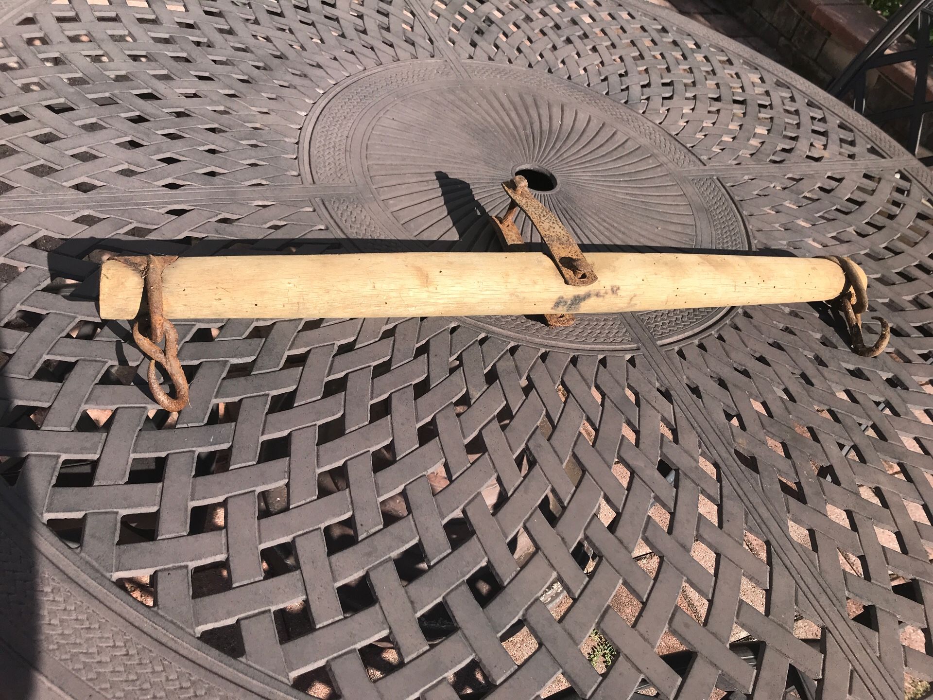 Old antique horse single tree . Decorating, project, vintage, rustic. Wall art, pool table light fixture project. Kitchen island light project.