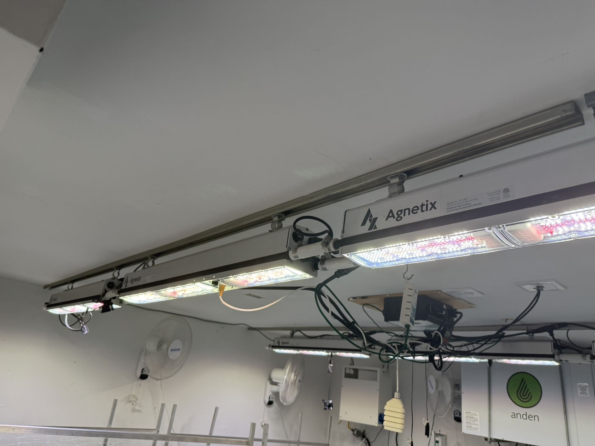 Eight Agnetix commercial LED water cooled grow lights with computer, camera system, dry cooler, sensor probe and all plumbing. Sold as a package.