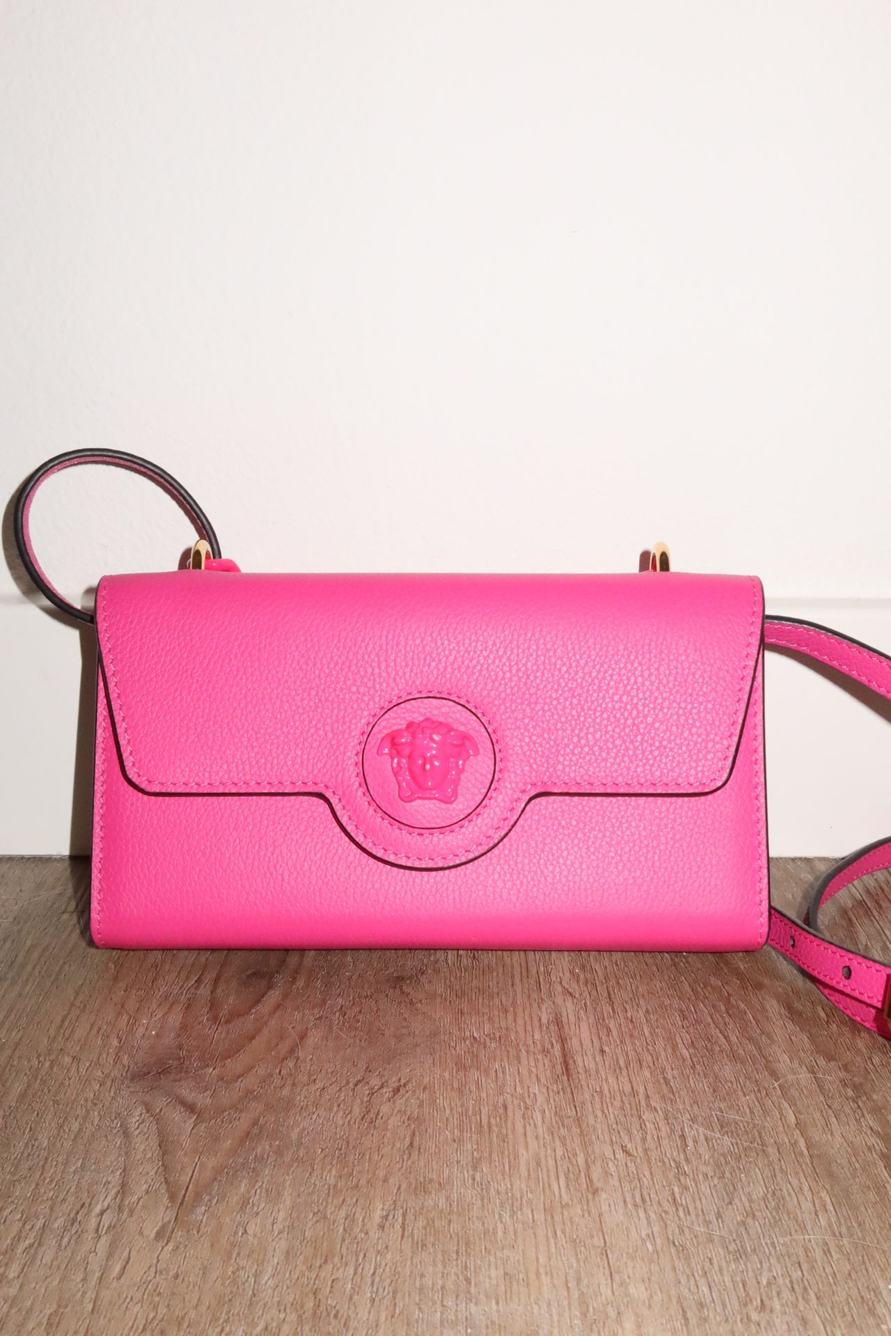 Versace Grained Calfskin La Medusa Wallet On Chain Fuchsia Pink Lilac