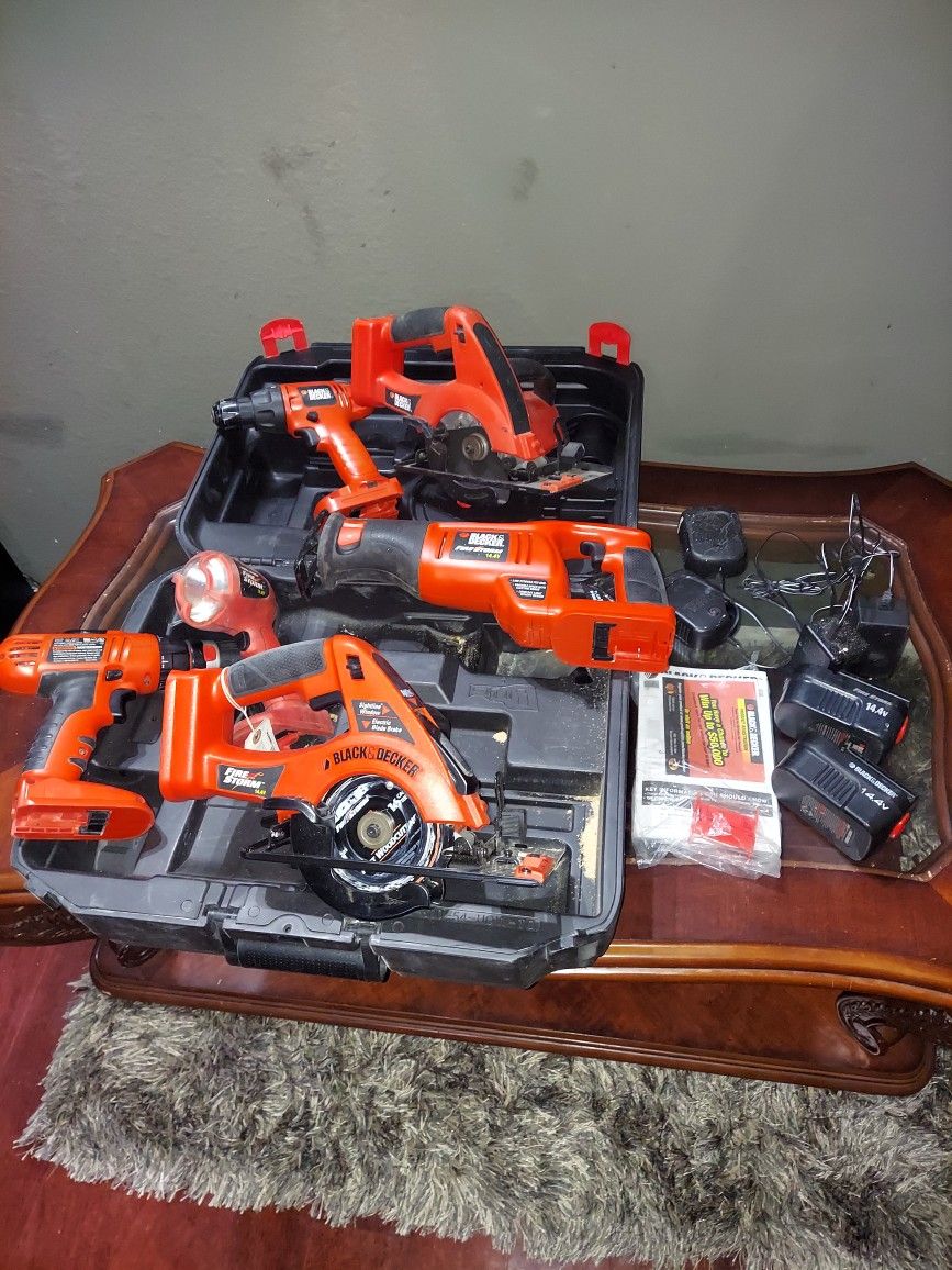 Has 1 extra drills and 1 extra saw 2 batteries and chargers