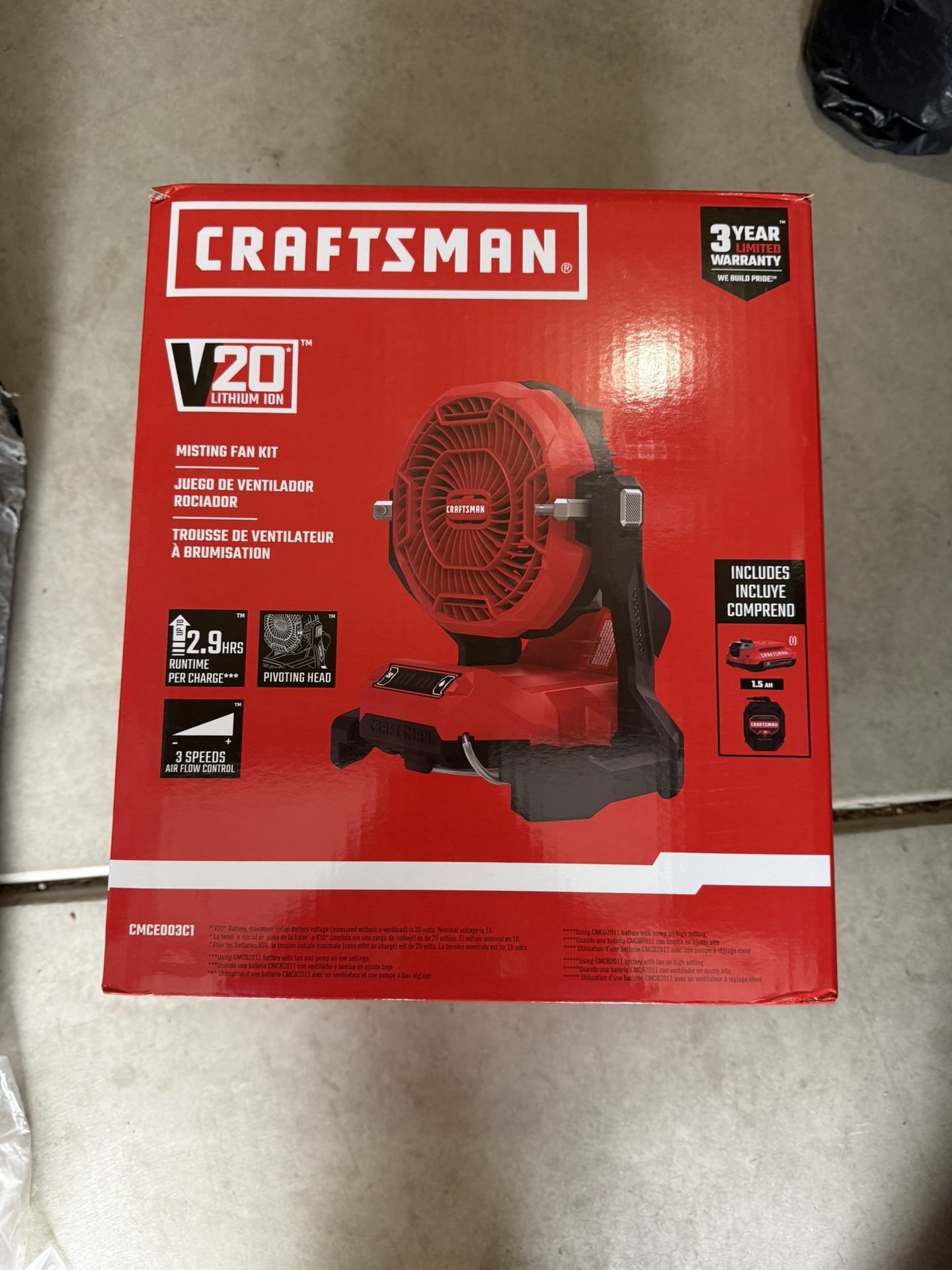 Asking $100 OBO Brand new CRAFTSMAN 7.5-in 20 -Volt 3 -Speed Outdoor Red Misting Personal Fan Charger Included