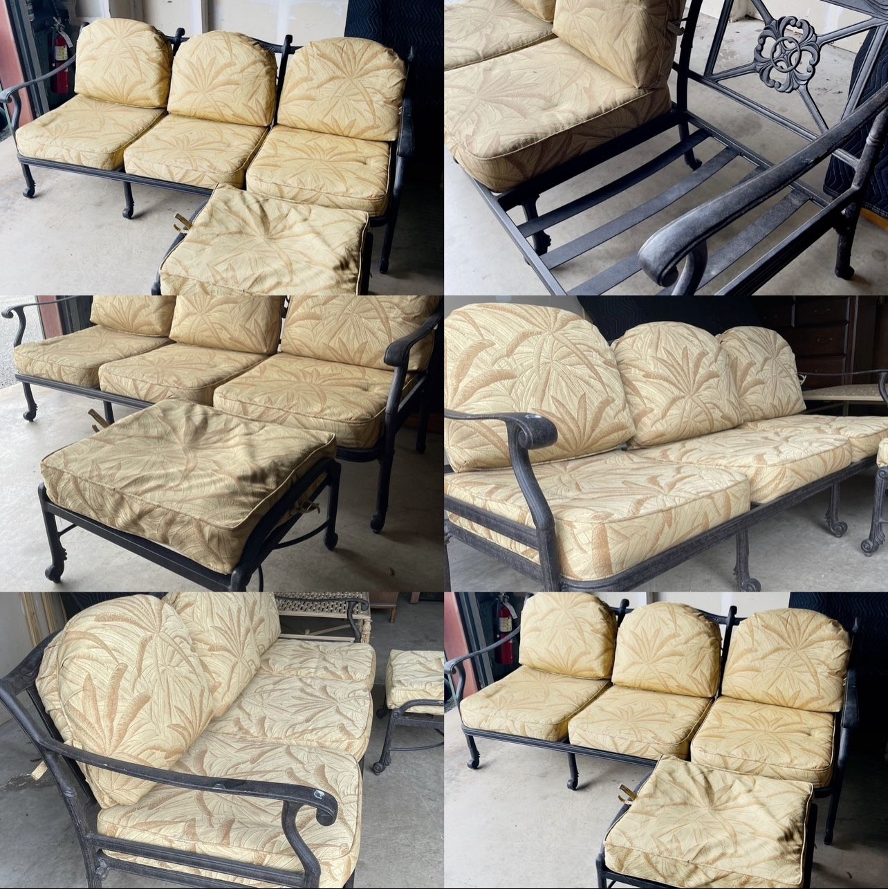 Homey Sesame colored outdoor fabric with polyester fiber Dimensions (In Inches): Sofa Seat: 78 W X 27D × 6 H, Back: 78 W X 6 D X 20 H Ottoman: 27 W X 23 D X 4 H
