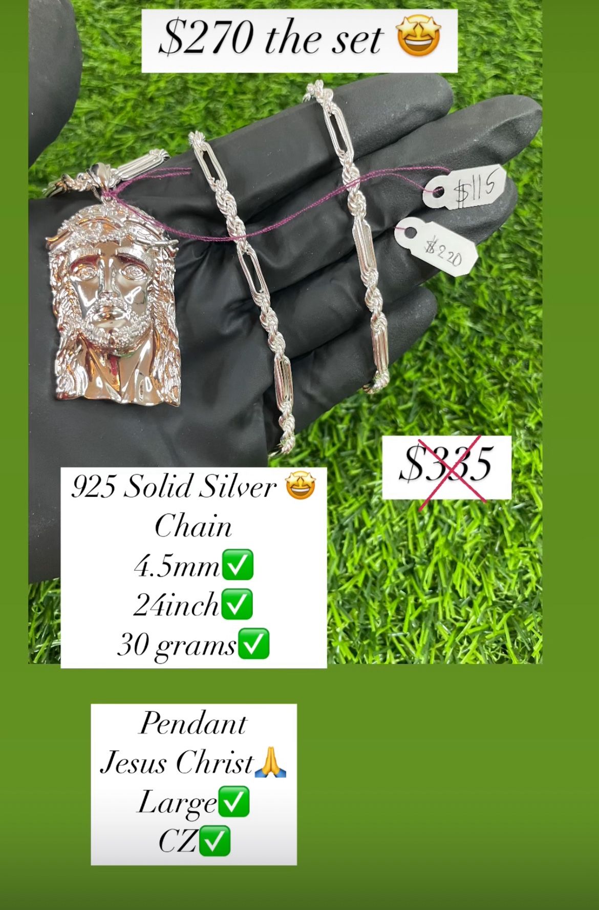925 silver chain and pendant, price is in picture Price is FIRM✅ My instagram is Quality_Bling if you’d like to check out more items We also have gold!!! Precio en foto todo es 925 Plata, mi Instagram es Quality_Bling Si gusta ver que mas tengo También tenemos oro 6…02…..3….2…7…03…81