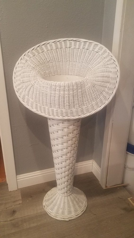 Vintage White 42" tall Wicker trumpet flower vase plant stand Floral arrangement Over all great condition Firm $75