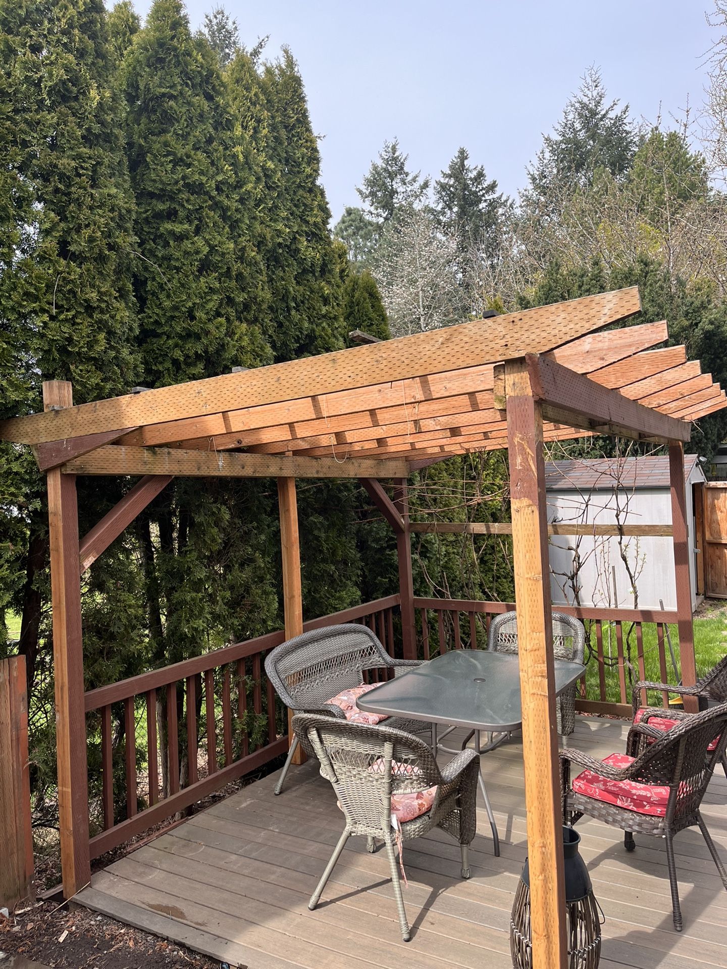 Selling our wooden 12x8 frame but covered 12x10 gazebo. Pressure treated wood with posts and rails having one coat of paint. Structurally sound, You Haul Away -