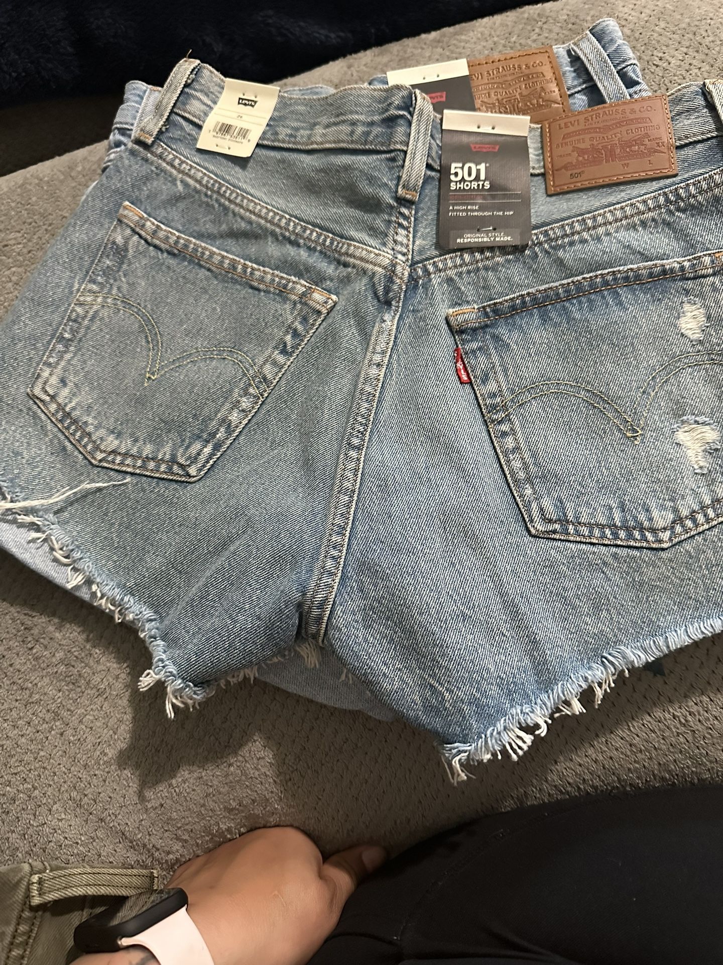 Size w25 & 26 women’s Levi’s shorts brand new $15 each . The ripped ones are size 26, the two are size 25 &29