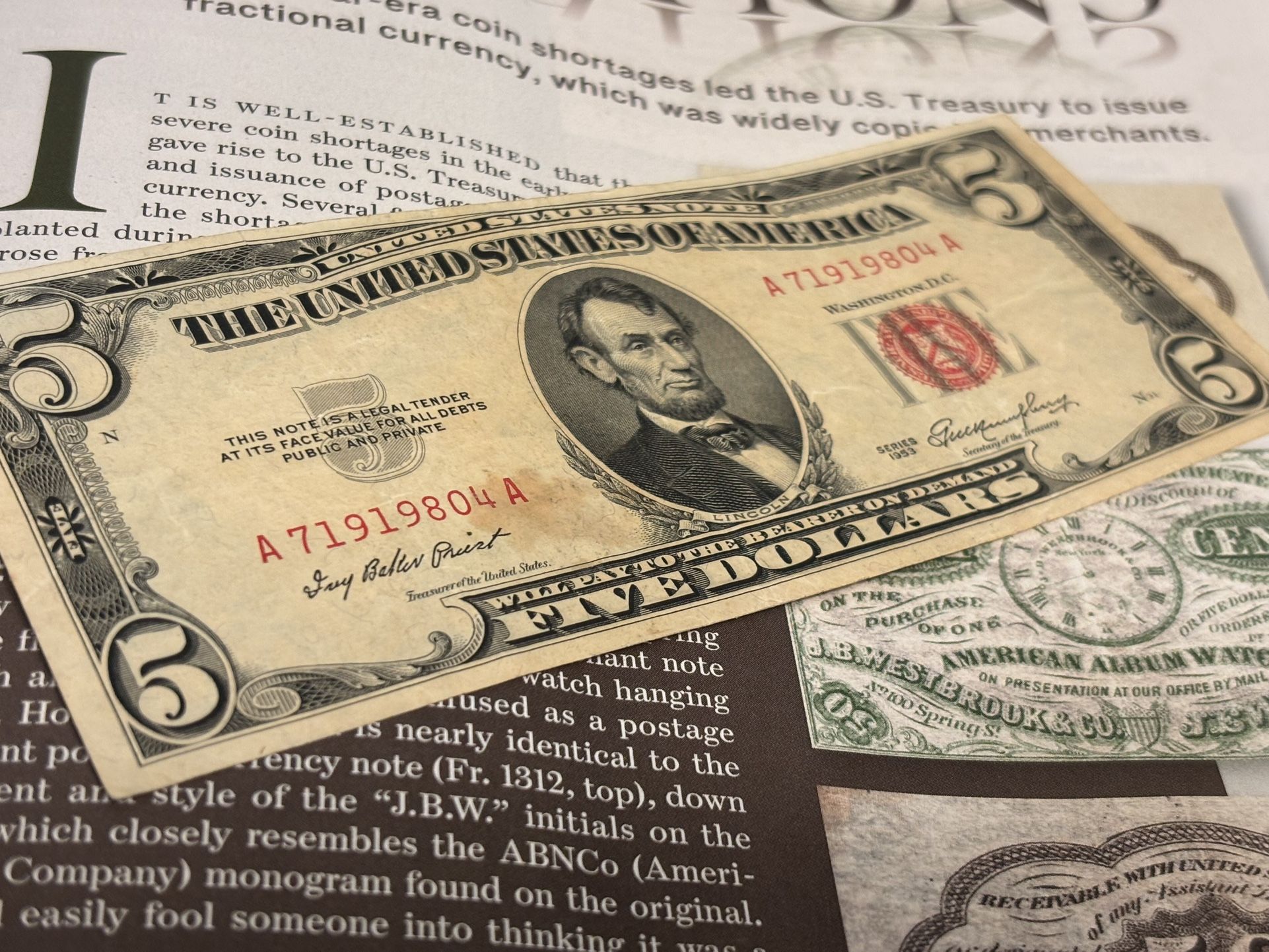$5 1953. Vintage banknote USA. For collection, hobby, fun.
