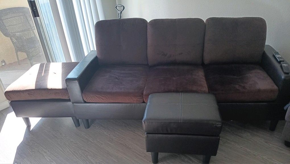 Brown sofa set with little ottoman just got them had them about 2 months prefer bigger ones