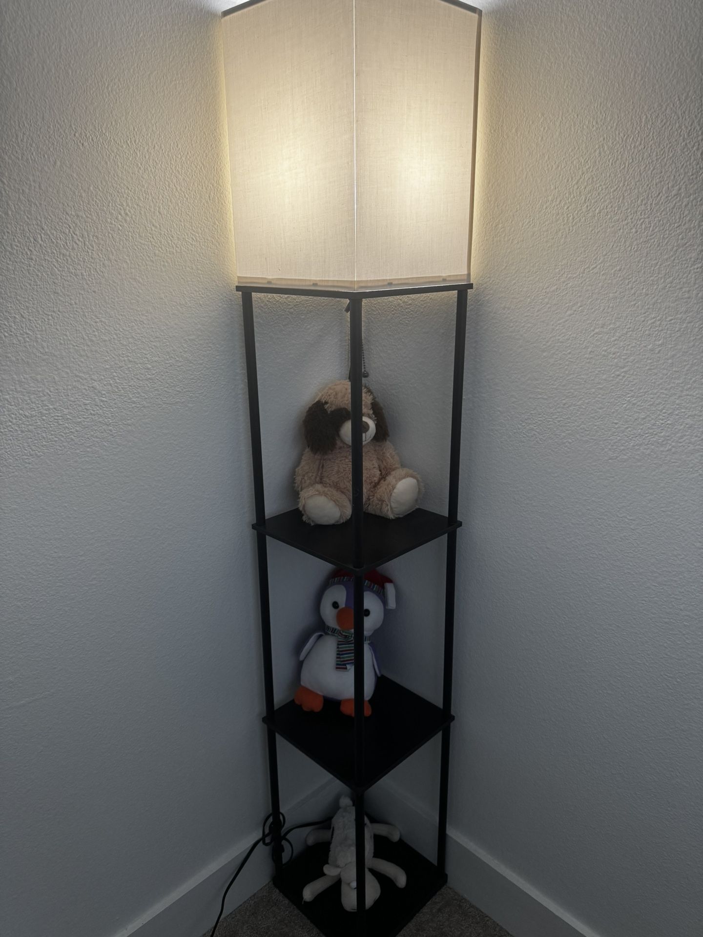 Corner Floor Lamp with Shelves, well maintained Amazon link - https://offerup.com/redirect/?o=aHR0cHM6Ly9hLmNvL2QvMDY3TUg1VkU= Happy to help with dismantling/disassembly for easy transport.