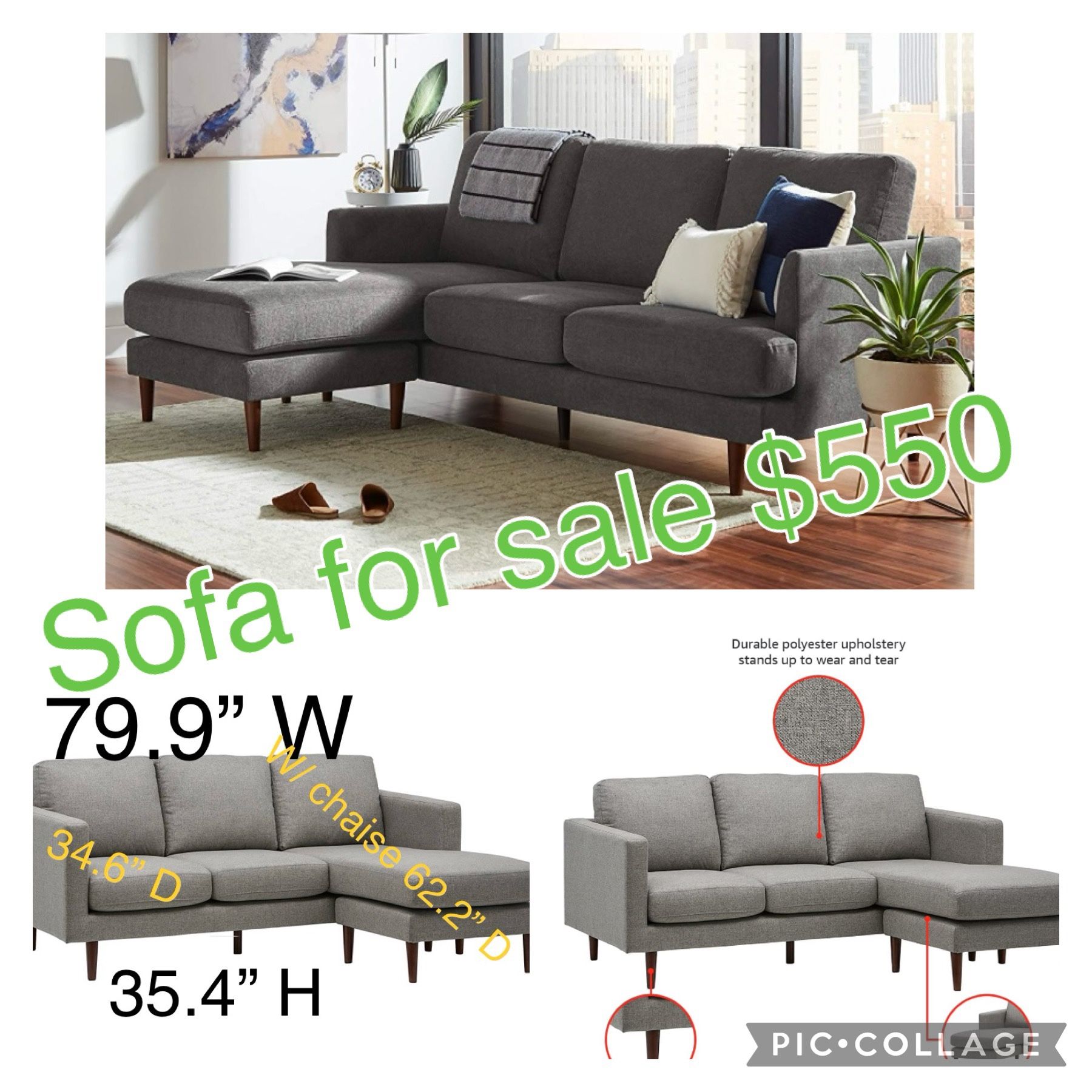 Pick up only, can separate to fit Truck or Van Pick up location North Anthem 85087 Modern Reversible Sectional Couch for Living Room Light Grey Cash only