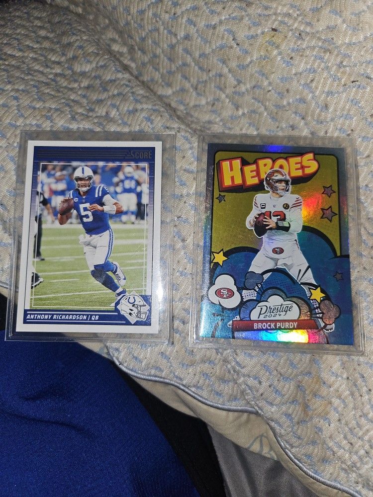 Both cards in mint condition. Price is for both 2024 Score Anthony Richardson, Brock Purdy Heroes make me a offer