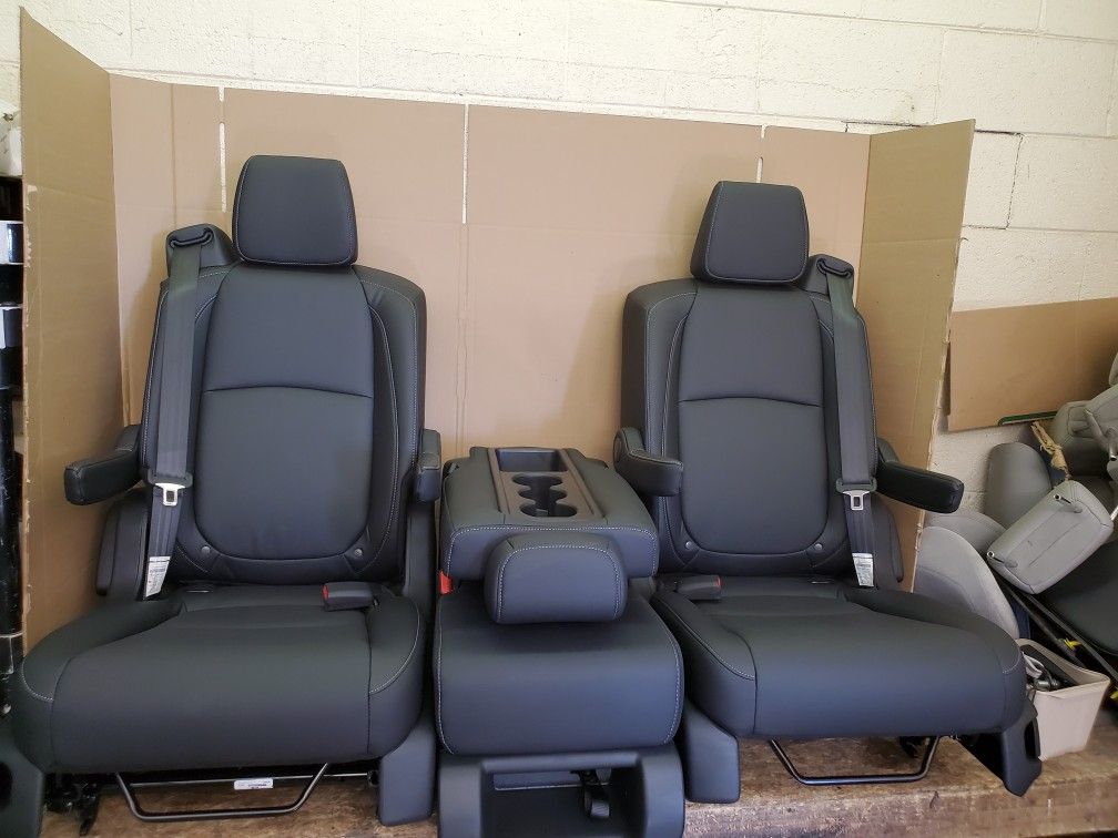 THIS WEEKEND DAYTONA TURKEY ROD RUN SWAP MEET INTERNATIONAL SPEEDWAY DAYTONA BEACH. Brand new bucket seats with seatbelts build in and middle seat black leather. Original OEM takeouts never used seats. They slide recline fold. Can be installed in truck van bus hotrod rv motorhome sprinter c10 vanagon blazer bronco suv project classic car and more. Apr 56-57 inches wide. $1200 set. 48osix343six18