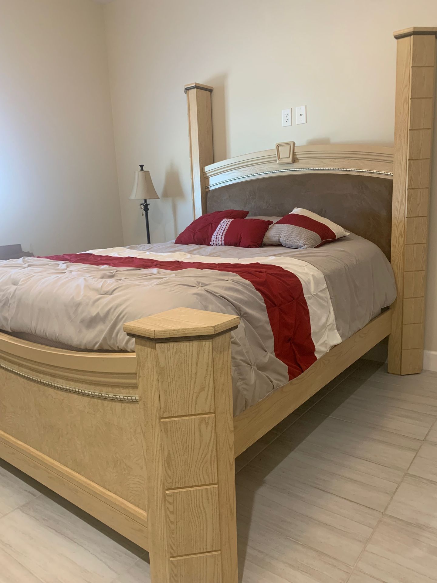 Beautiful Queen bedroom set includes bed( no mattress) 6 drawer dresser with mirror and 1 nightstand