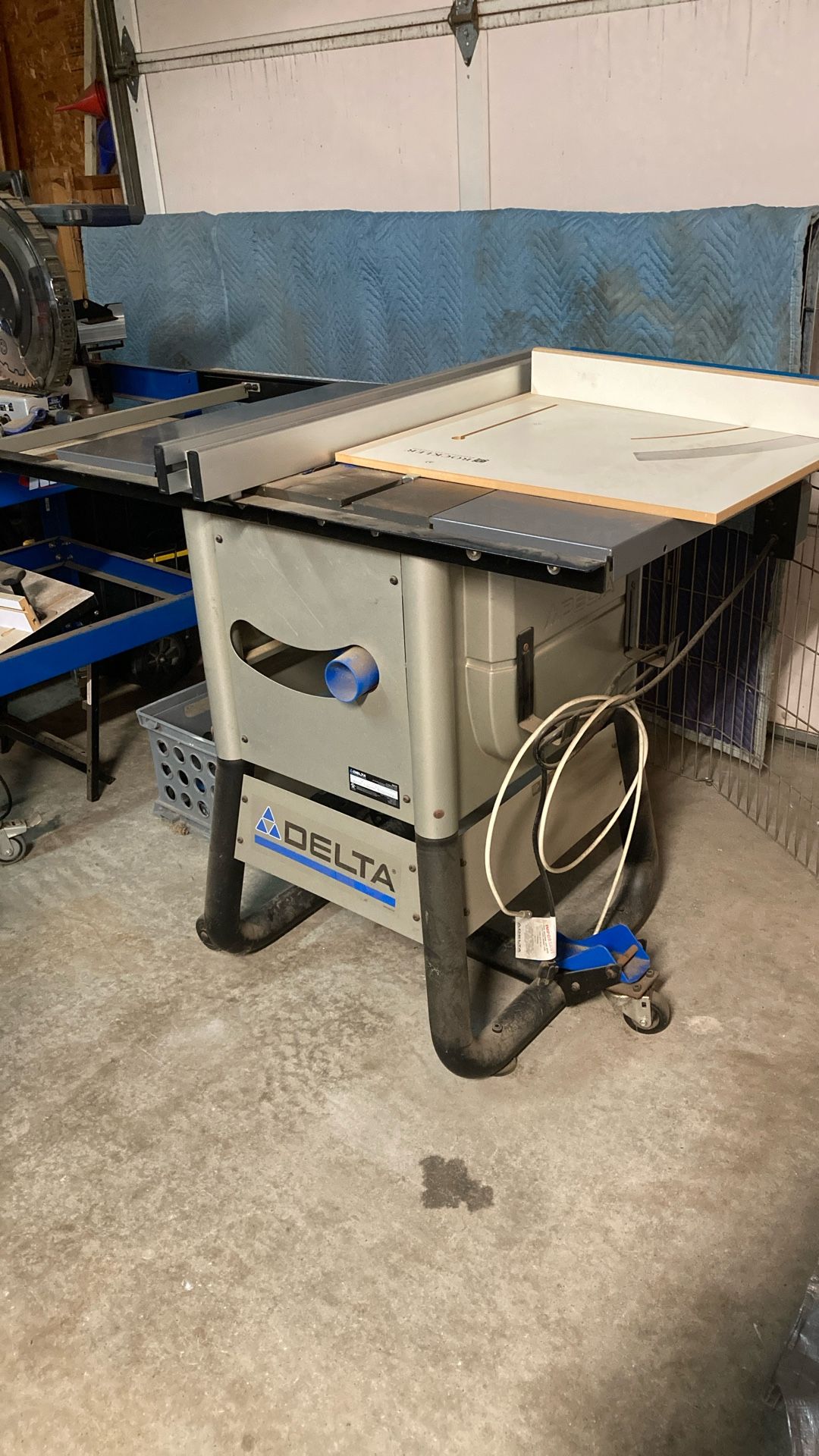 Delta table saw, rockler router table, rockler Cross cut table, cobalt chopsaw, Dewalt table, stand and old sander table. all but sand table are practically new open, but used once or twice.