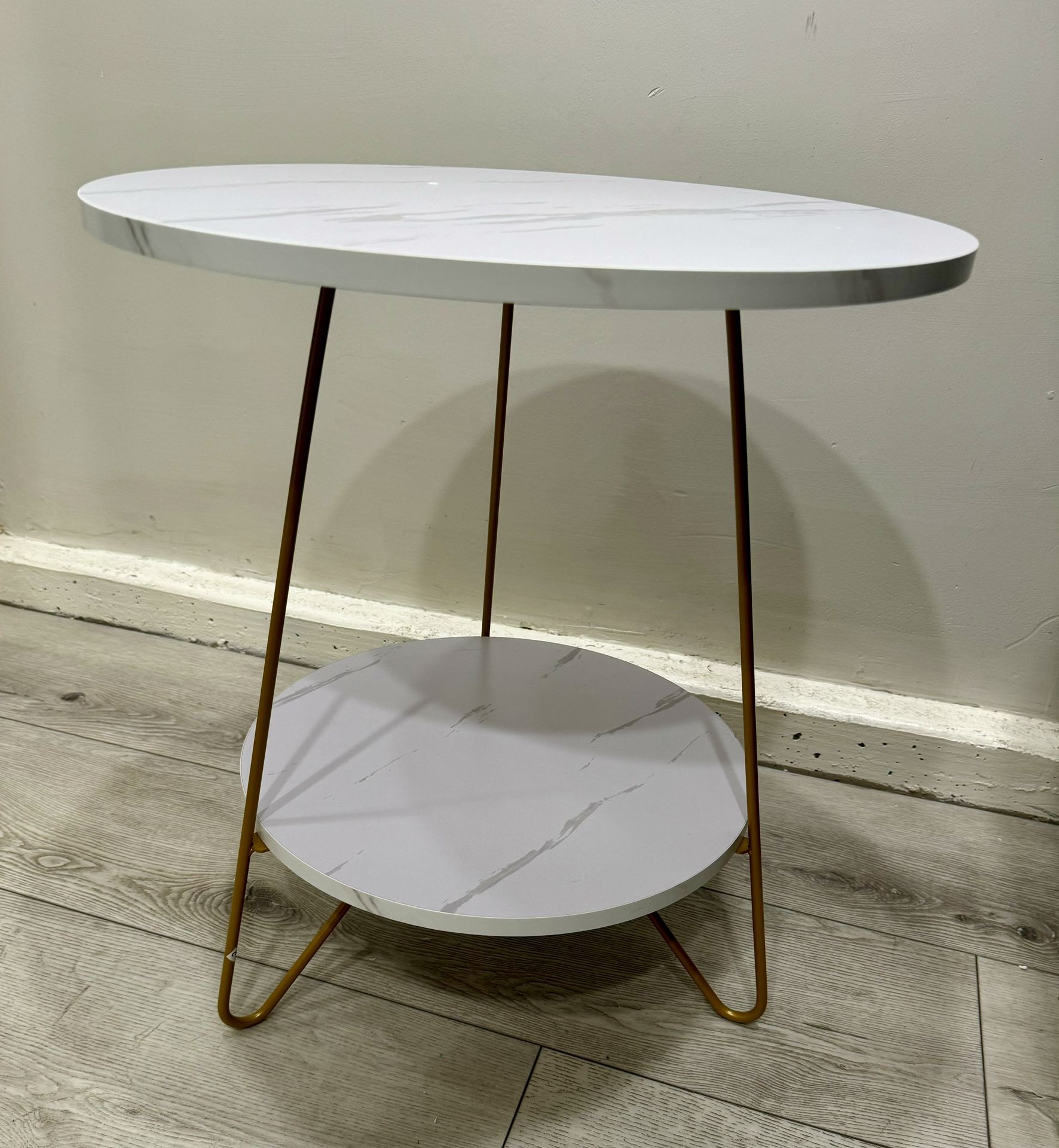 Faux Marble End Table, 2-Tier Round Sofa Bedside Table with Shelves New!