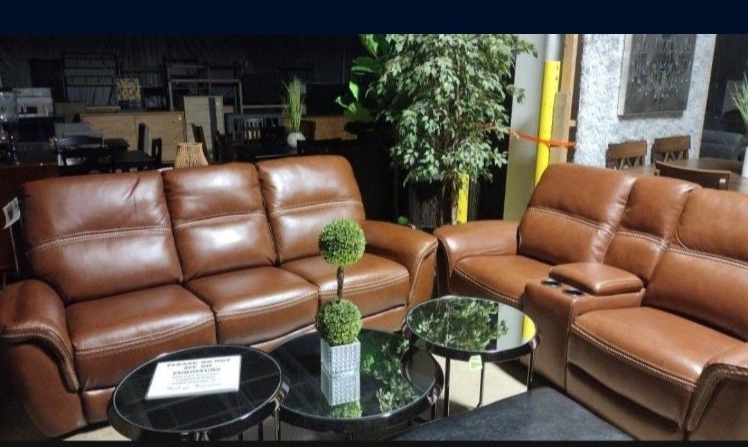 2 pc leather power brown sofa with Loveseat with 2 cup holder USB on both side ofSofa: 90.7” W x 40.1” D x 41.1” H Loveseat: 81” W x 40” D x 41” H sofa and both sides on loveseat SERIOUS BUYERS ONLY!!!