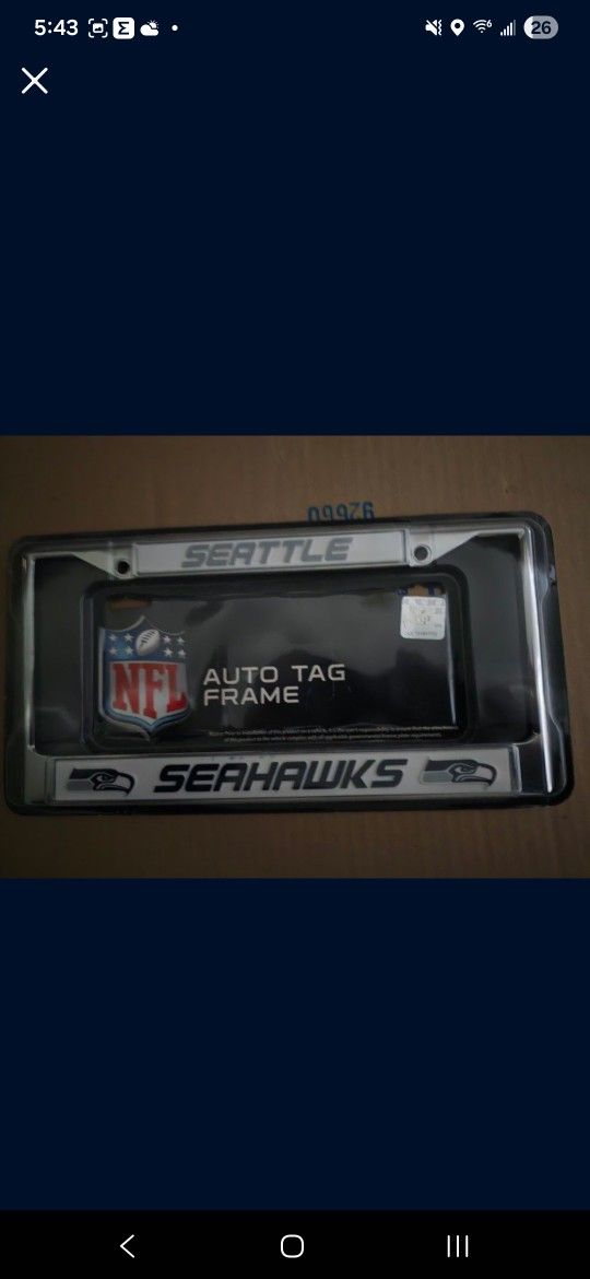 Seattle Seahawks Chrome metal license plate frame. Also available in plastic. Other Seahawks items also available. Located One Mile West of Santa Fe Station. Pick up only.