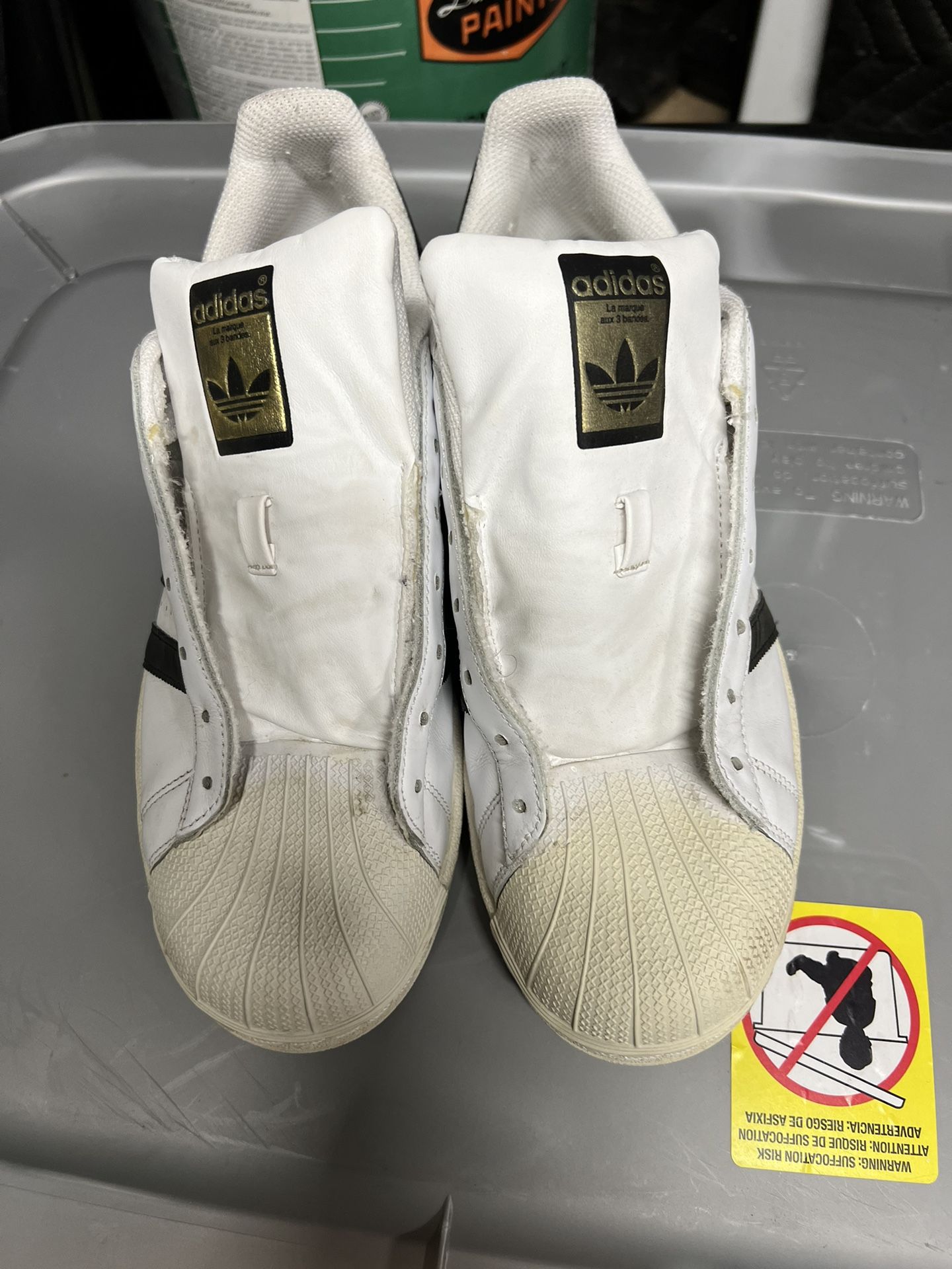 Adidas super stars size 10 in good used condition no laces.