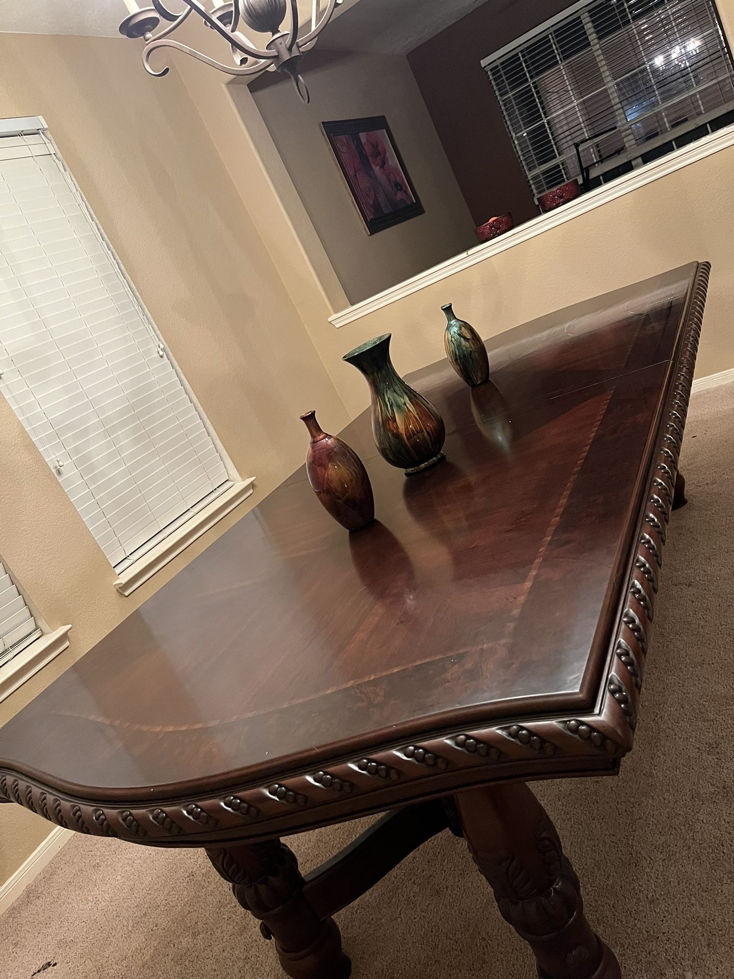 Real wood expandable dining room set with 8 chairs and 2 matching bar stools
