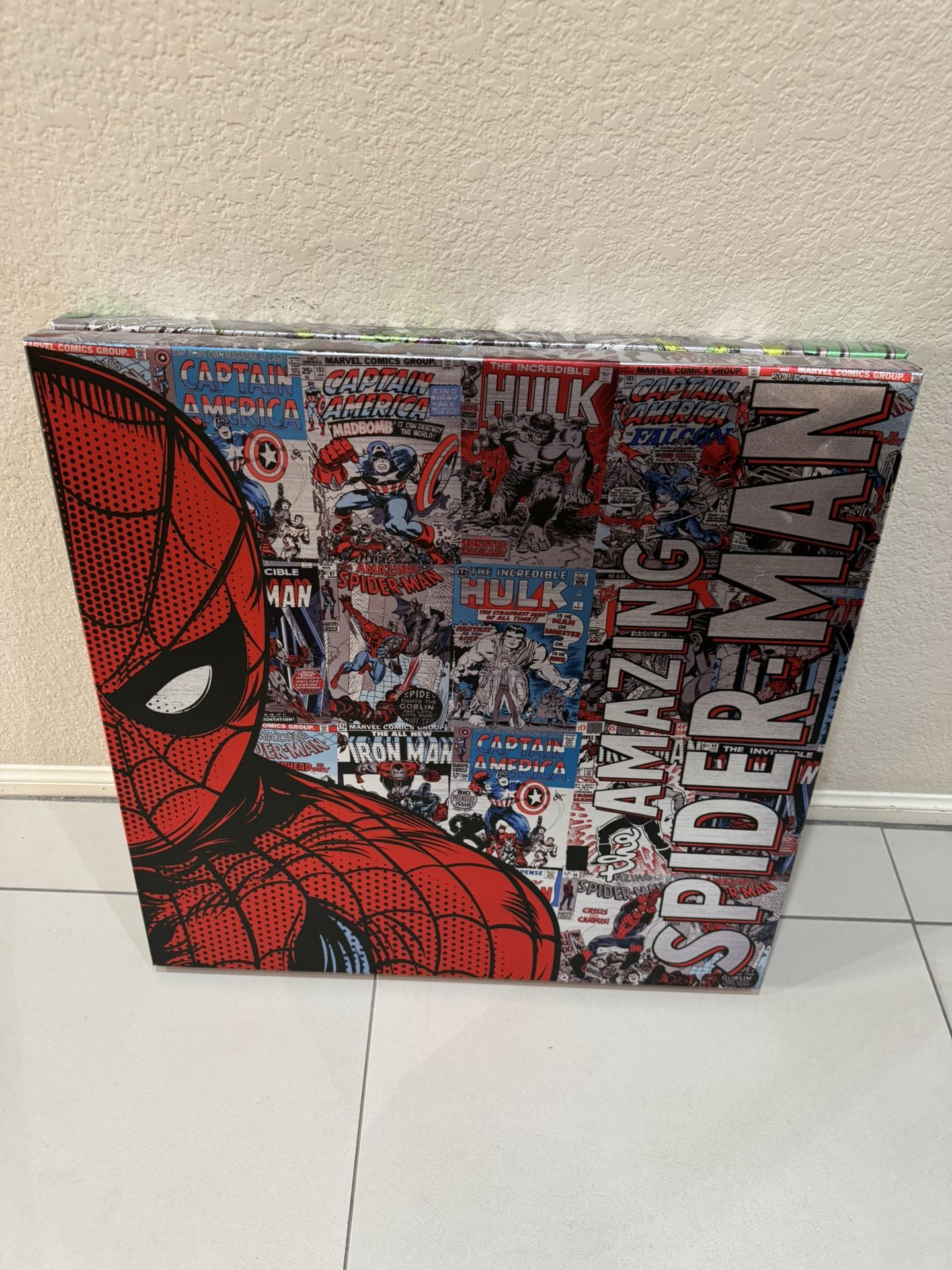 I have really cool Spider-Man and really cool Hulk Canvas’s! They are both 2 feet wide and 2 feet tall each Selling them separately or selling them together $25 each or $45 for both Shipping is $20.49