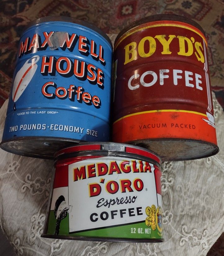 HERE IS A LOT OF VINTAGE /ANTIQUE TINS. VARIOUS SUBJECTS. CASH ONLY. PUBLIC MEET UP