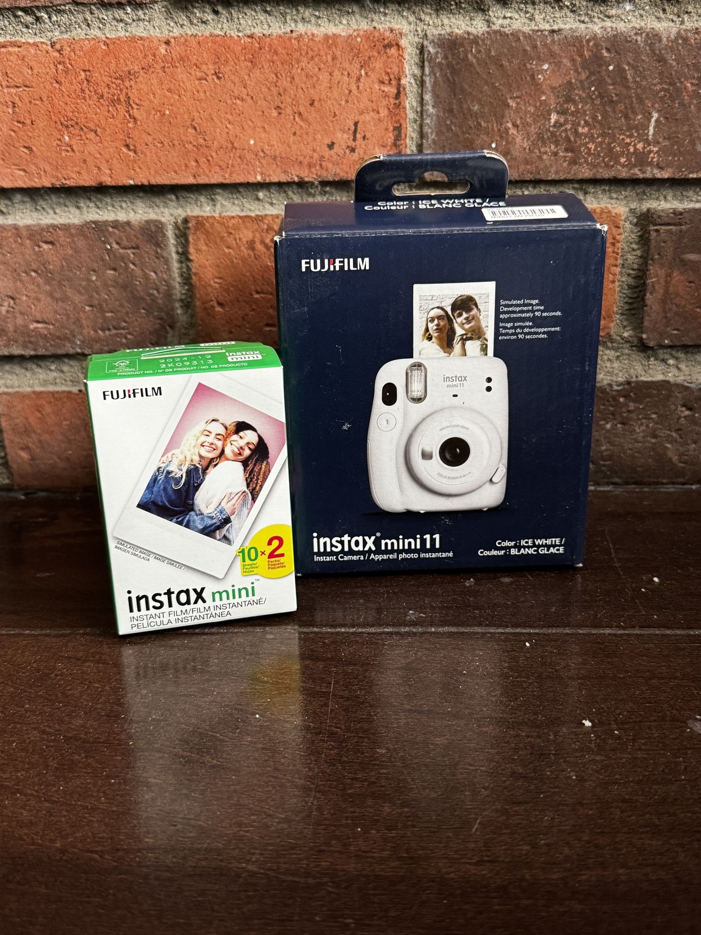 Instax mini 11 camera in ice white color, comes with original box as well as 1 box of film (20 photos total). Have extra film available at $5 per box