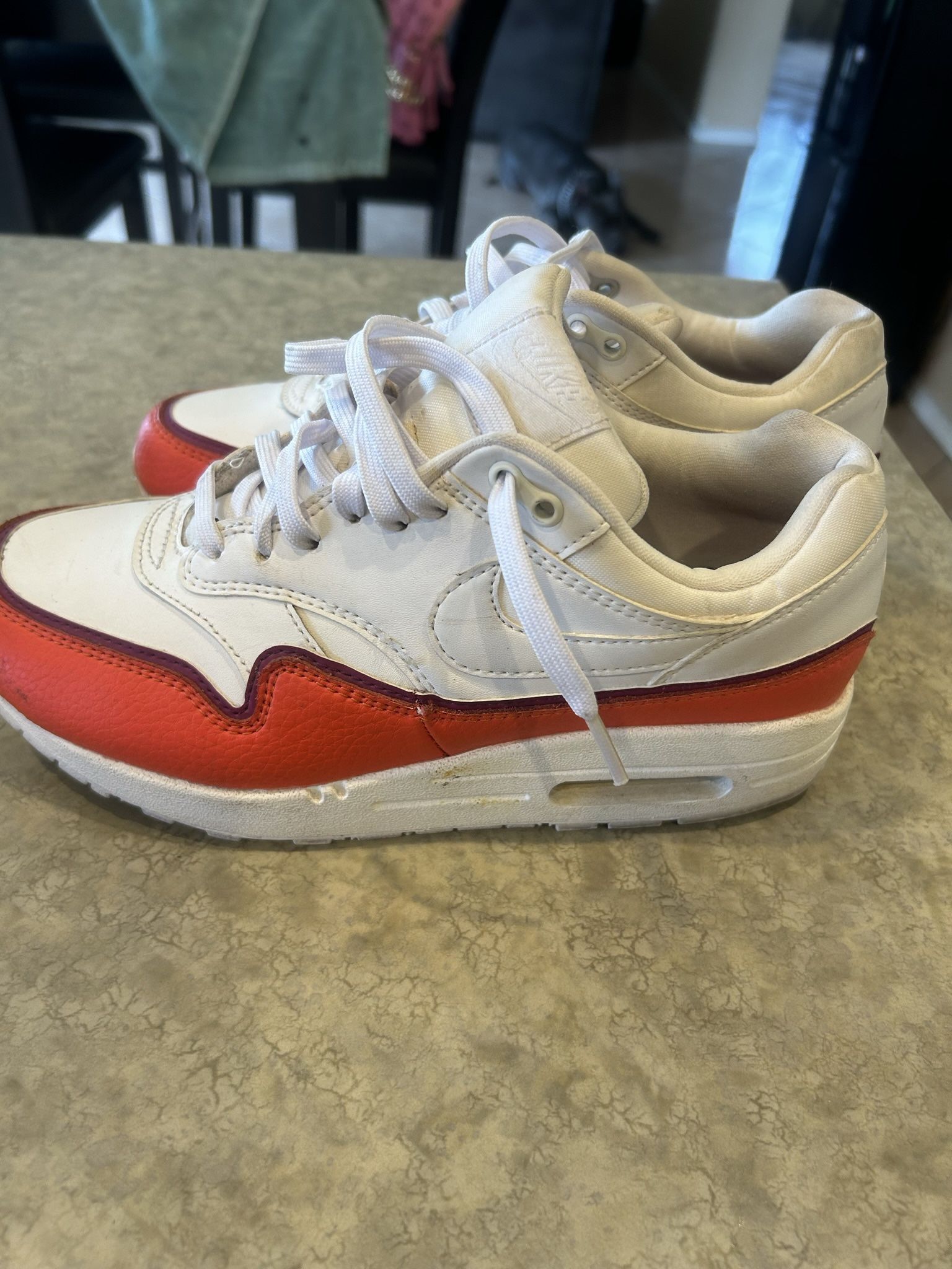 super comfy size 7 Nike white with orange and a strip of maroon. Very good shape &condition.!