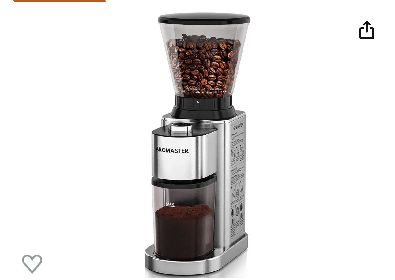 Aromaster Burr Coffee Grinder,Conical Coffee Grinder, Stainless Steel Coffee Bean Grinder with 24 Grind Settings, Espresso/Drip/Cold Brew/French Press Coffee Maker slightly used