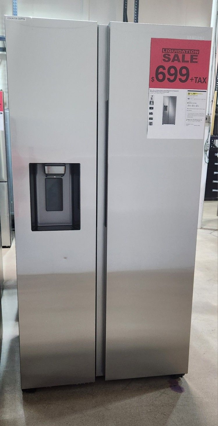Samsung side by side Refrigerator ✅️22 cu.ft ✅️counter depth ✅️ice maker 🔥 Huge Discounts: Save over 60% off retail MSRP on our liquidated stock. ✨ Brand New Bargains: Score brand new, in-box appliances at prices that beat retail, complete with the peace of mind of a 1-year manufacturer warranty. We also offer scratch and dent, reconditioned appliances. 🚚 Convenient Delivery & Installation available: We deliver up to 40 miles and offer professional installation to make your shopping experience seamless and stress-free. 📍 Visit us at AMP Liquidations, 15406 Midway Rd, Addison, TX 75001, and make the most of these fantastic deals! Hurry in—these offers won’t last long! See you soon! 💥 Ask for Valerie