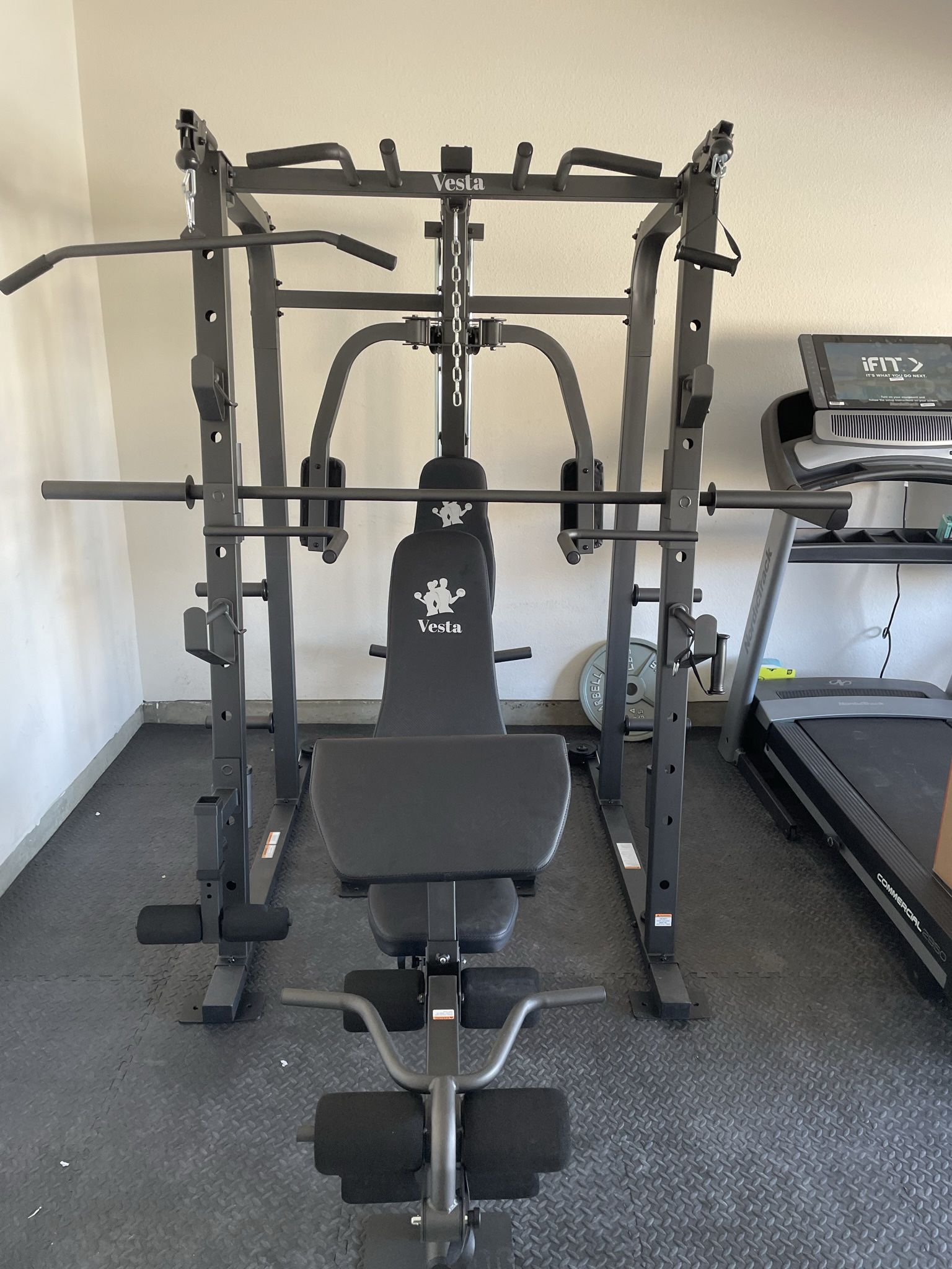 Vesta Fitness Smith Machine 1001 w/Bench Attachment | 245lb Cast Iron Olympic Weights | 7ft Olympic Bar | Fitness | Gym Equipment | FREE DELIVERY 🚚